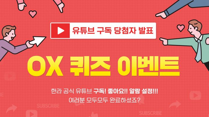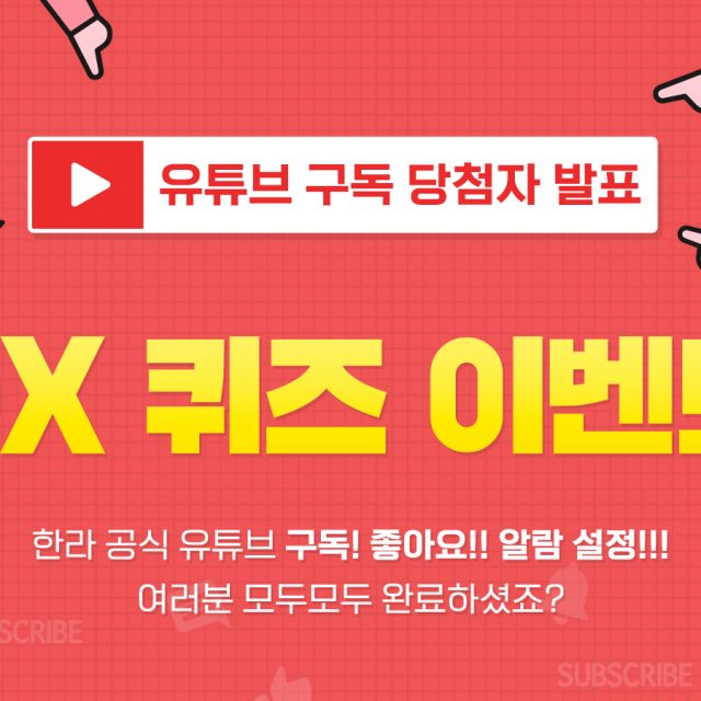 한라 공식 유튜브 구독하기OX 퀴즈 이벤트 당첨자 발표