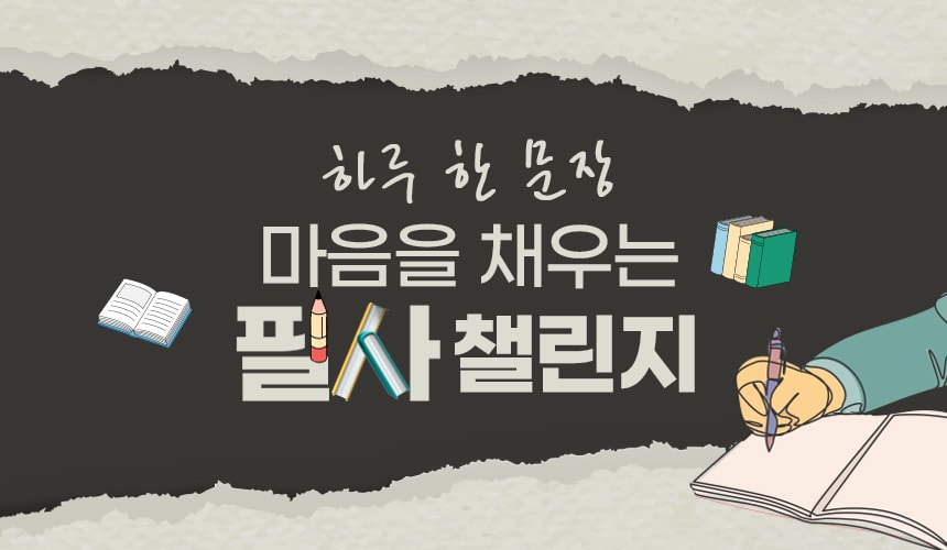 더가도 투게더 ep. 6하루 한 문장, 마음을 채우는 필사 챌린지 more> 스마트폰, 게임, 쇼핑 등 도파민 중독으로 피로감을 호소하는 시대. 베껴 쓰는 행위인 ‘필사’를 통해 마음을 차분히 가라앉... 스마트폰, 게임, 쇼핑 등 도파민 중독으로 피로감을 호소하는 시대. 베껴 쓰는 행위인 ‘필사’를 통해... 스마트폰, 게임, 쇼핑 등 도파민 중독으로 피로감을 호소하는 시대. 베껴...