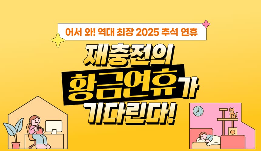 어서 와! 역대 최장 2025 추석 연휴재충전의 황금연휴가 기다린다! more> 7일 길게는 10일간의 긴 추석 연휴가 다가옵니다. 직장인에게는 달콤한 휴식과 재충전의 기회가 될 텐데요. HL인들은 황금... 7일 길게는 10일간의 긴 추석 연휴가 다가옵니다. 직장인에게는 달콤한 휴식과 재충전의 기회가 될 텐... 7일 길게는 10일간의 긴 추석 연휴가 다가옵니다. 직장인에게는 달콤한 ...