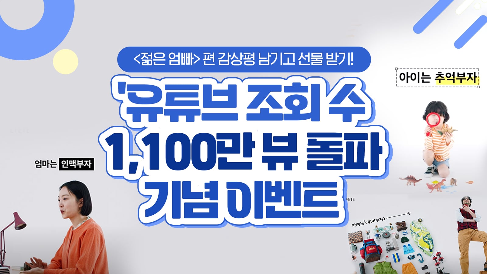 <젊은 엄빠> 편 감상평 남기고 선물 받기!유튜브 조회 수 1,100만 뷰 돌파 기념 이벤트