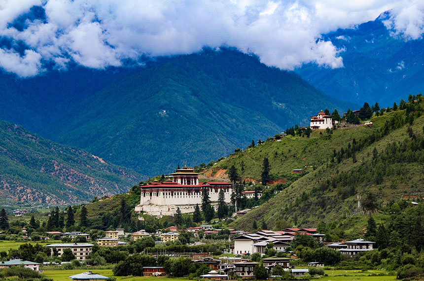 아름다운 자연과 어우러지는 부탄 밸리 수도원과 옹기종기 자리한 가옥들.