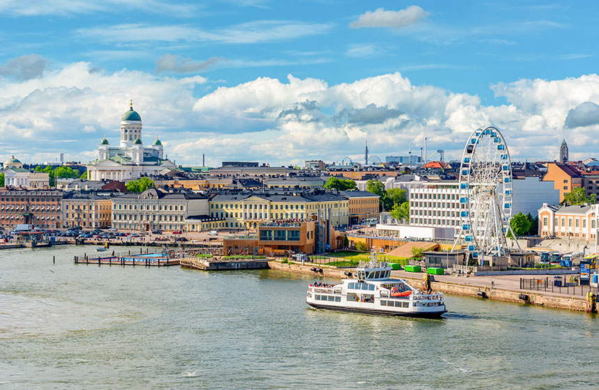 항구와 대성당이 어우러지는 핀란드 헬싱키의 도시 경관.