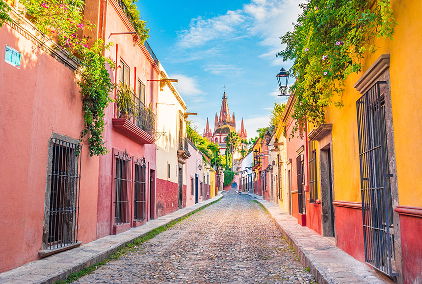 감성 넘치는 멕시코 산 미겔 데 아옌데 지역의 아름다운 거리 풍경.