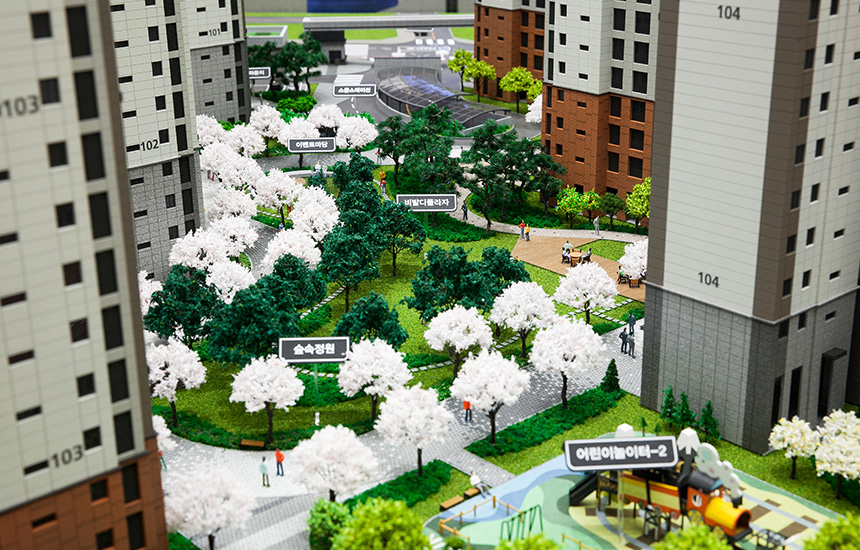 천안 부성지구 한라비발디에는 지하 2층~지상 25층 아파트 9개 동과 근린생활시설이 들어선다. 세대의 대부분은 남향 배치의 4Bay 구조로 최고의 채광을 자랑한다. 입면 패턴으로 완성한 모던한 단지 외관과 멋진 스카이라인은 부성지구의 랜드마크로 손색이 없다. 특히 출입구에서 바로 지하 주차장으로 연결되므로 차량과 보행자의 동선이 겹치지 않아 안전하고, 단지 전체를 순환하는 산책로가 조성돼 쾌적하다.