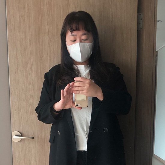 A. 네. 평소에 밝은 파스텔 계열만 어울린다고 생각했는데, 대비감 있게 색을 사용하라고 해서 의외였습니다.