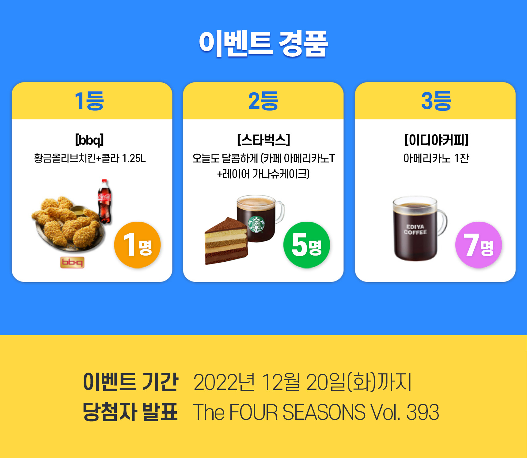 1등 당첨은 선정 완료되었습니다. 축하드립니다~!