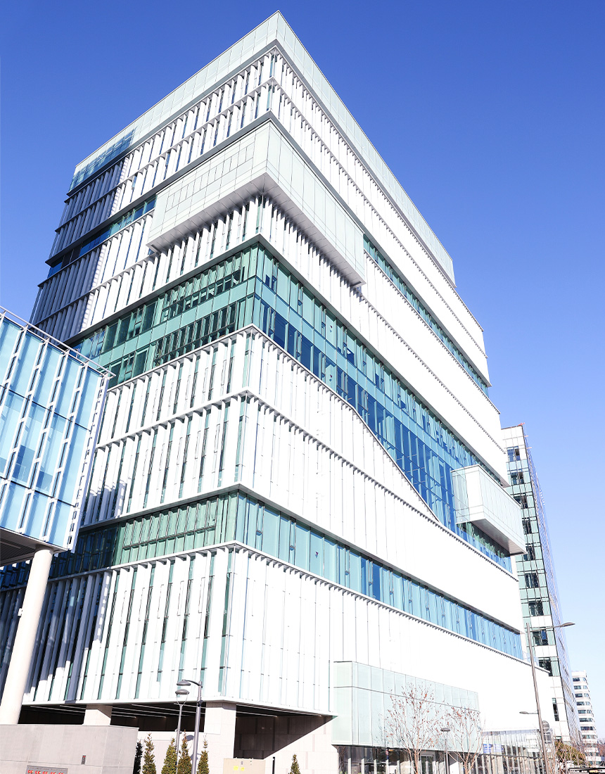 건물은 연면적 30,906㎡, 지하 5층~지상 12층 규모 철근콘크리트 구조로, 동일한 평면을 차곡차곡 쌓아 올리는 아파트나 일반적인 업무시설과는 한 차원 다른 모습이다. 지하 5층부터 지하 2층까지는 주차장, 지하 1층은 식당과 피트니스 등 직원 편의 시설을 배치했다. 1층 로비를 지나면 2층과 4층은 임대 오피스로 활용하고, 3층은 카페테리아, 5층부터 11층까지 사무 공간, 12층은 대표 집무실과 세미나실이 있다. 사무 공간 사이사이에는 휴게 공간, 폰부스, 수면실 등을 고루 갖추고 있다. 외관 디자인도 독특하다. 루바 1,650개가 건물을 둘러싸고 있고, 반도체 칩을 형상화하여 외부로 2m 돌출되도록 시공해 단숨에 눈길을 끈다.