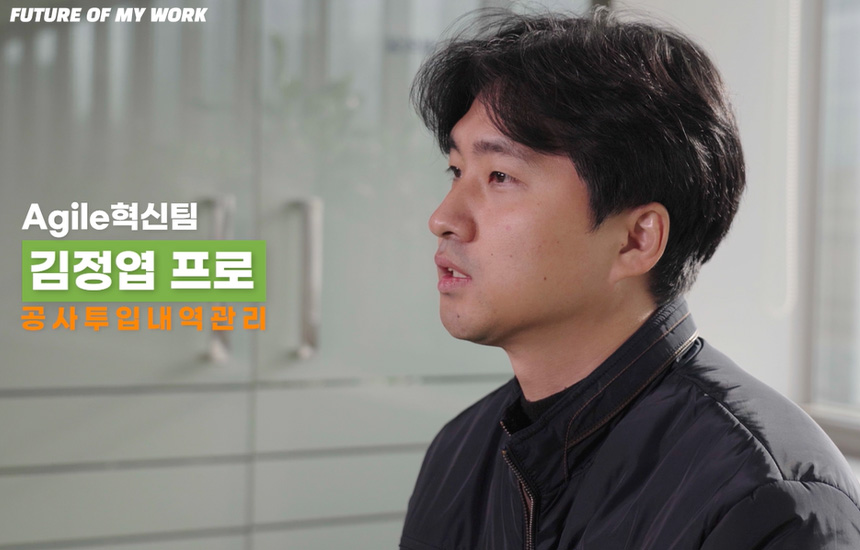 김정엽 프로 안녕하십니까? Agile혁신팀에서 현장 관리 PI 중 공사투입내역관리를 담당하는 김정엽 프로입니다.