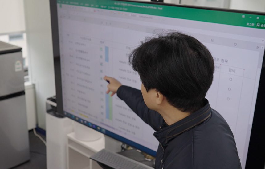 김정엽 프로 현 단계에서는 사업관리팀 및 동반성장팀, DI팀, 현장 공무·관리 직원의 조언을 가장 많이 받습니다. 당면한 업무를 구체화하는 데 가장 필요한 유관부서이기 때문입니다. 과장을 하자면 본사와 현장을 막론하고 누구와도 협업의 시간을 가질 예정입니다. 개선된 시스템은 특정 부서에 국한되지 않고 회사 전체에서 활용될 것입니다.