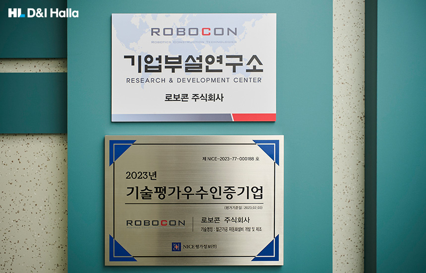 A. 건설업 분야가 보수적이라고들 하잖아요. 로봇 기술을 베이스로 생산한 철근을 납품한다고 했을 때 전통적인 방식을 적용한 철근과 과연 품질이 같은 것이냐 하는 의문을 품는 듯해요. 로보콘의 라인을 소개하고, 사람의 손으로 하는 작업보다 훨씬 더 좋은 퀄리티를 제공할 수 있다는 점을 꾸준히 홍보하고 있습니다. H사, S사 등 대형 건설사와도 미팅을 진행하고 있는 만큼, HL 디앤아이한라와도 협업할 부분이 있으리라 기대합니다.