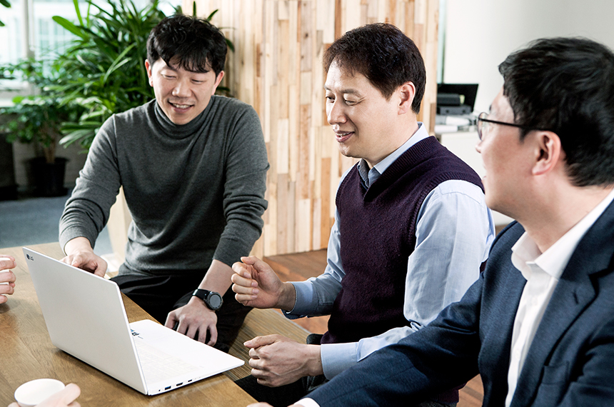 “우리 팀은 ‘즐겁게 하자’는 분위기에서 일합니다. 스스로 창의적인 아이디어를 발굴하고 제안하며 토론하는 수평적인 문화예요. 팀장으로서 팀원에게 고맙고 앞으로도 장려하고 꾸준히 지원할 계획입니다. 또한 회사 운영의 흐름을 파악할 기회이고 일하면서 다른 분야의 업무도 저절로 습득할 수 있으니까 팀원 개개인의 성장을 위해서 의욕을 가지라고 권합니다.”