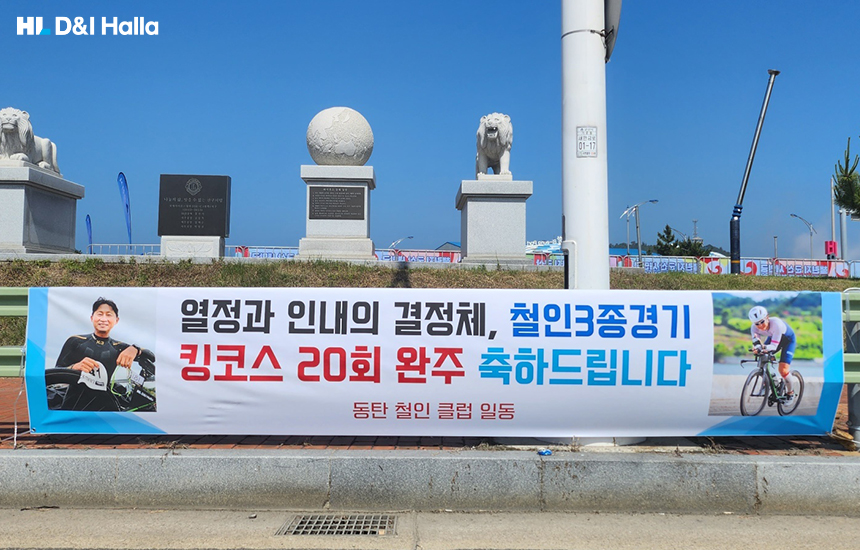 이번 아이언맨 코스 20회 완주 도전 소식을 듣고, 전국에 계신 동료 철인들로부터 응원받았습니다. 마지막 마라톤 반환점을 돌아 결승선을 향해 달릴 때는 갤러리들의 응원 소리도 컸습니다. 경기를 마치고 동료 철인들과 뜨거운 포옹을 나누고 하이파이브를 할 때는 가슴이 뭉클하더군요. 경기장에는 전 근무지였던 동탄, 제 고향인 여수, 장흥, 원주 등 전국 각지의 동료 철인들이 보내온 응원의 현수막도 걸려 경기 내내 저를 서포트해 주었습니다. 그리고 사내 마라톤 동호회에서 경기 중 필요한 보급품 구입비를 지원해 주셨어요. 회 전 교통사고로 우여곡절이 있었지만, 많은 관심과 응원이 저를 끝까지 뛰게 해주었습니다. 앞으로 고마운 분들에게 은혜를 갚으며 살도록 노력하겠습니다.