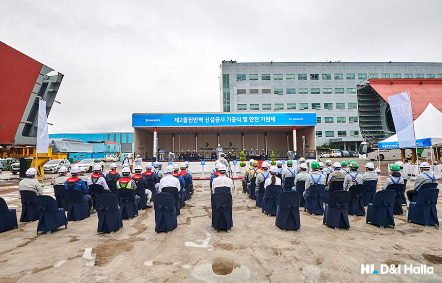 지난 7월 4일 전남 영암군 삼호읍 용당리에 소재한 현대삼호중공업에서 ‘제2돌핀 안벽 신설 공사’ 기공식 및 안전 기원제가 개최됐다. 이번 공사는 현대삼호중공업 내 친환경 선박 의장 작업을 위한 안벽을 추가로 신설하는 공사로 당사는 지난 5월, 해당 공사를 약 794억 원에 수주했다. 공사 규모는 의장 안벽 383m와 차량용 도교 146m, 등부표 및 오탁방지막이다. 준공은 2024년 6월 30일 예정이다.