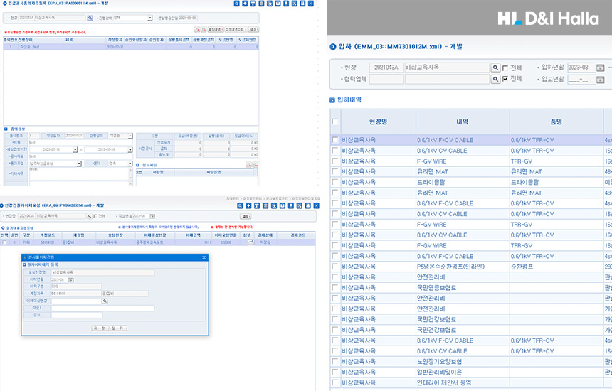 두 번째 효과는 수작업으로 하던 많은 일이 시스템화, 자동화됩니다. 예를 들면 타 현장의 전용 유휴 자재 수배 시 전화나 메신저를 활용하던 것을 시스템으로 조회와 전용 요청이 가능해집니다. 일용직 보험료 계산 등의 수기 업무는 외부 시스템을 도입해 자동화를 진행할 예정입니다.
