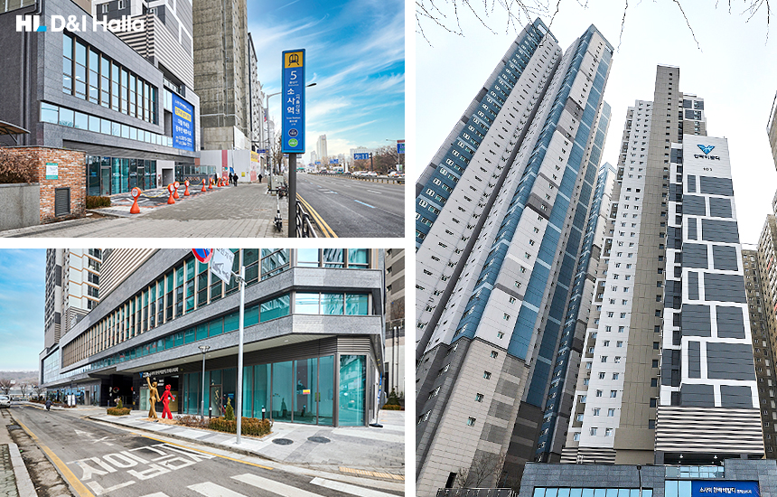 이곳은 지하 5층부터 지상 36층 총 2개 동의 초고층 주상복합단지로 지하는 주차장, 지상 1, 2층은 근린생활시설, 3층은 헬로라운지, 스터디룸, 피트니스, 야외 휴게시설인 테라스로 구성되어 있다. 4층부터는 23층 피난 안전 구역을 제외하고 주거 공간이며, 옥상에는 정원이 있다.