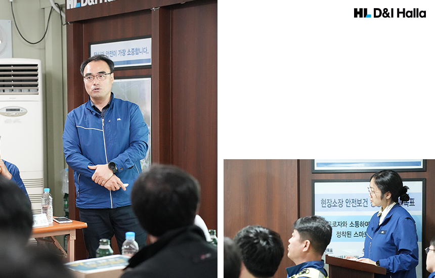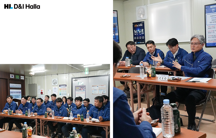 홍 수석 사장은 먼저 회사 전반에 대한 경영 상황과 계획을 공유했다. “작년에 제일 잘한 일 중 하나가 중대재해 ZERO를 달성한 것이다. 당 현장도 준공 때까지 긴장을 늦추지 말고 잘 해주길 바란다.”며 “올해도 쉽지 않겠지만, 어려울수록 조금 더 잘 해내면 분명 더 좋은 결과가 따라올 것이다. 우리를 믿고, 외부에 우리의 저력을 보여주자.”라고 직원들의 사기를 북돋웠다.