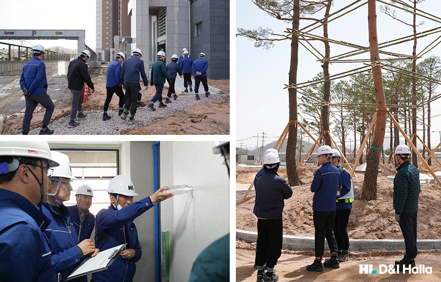 지난 3월 29일 경남 김해시에 위치한 김해 장유역 한라비발디 센트로 아파트 신축공사 현장에서 ‘CEO 합동 MINE 품질 점검’이 개최됐다. 이번 품질 점검이 진행된 현장은 지하 2층, 지상 29층 규모의 총 5개 동(442세대)으로 이뤄진 단지이며, 올해 7월 입주 예정으로 현재 준공률 87%(24년 3월 말 기준)에 달한다.