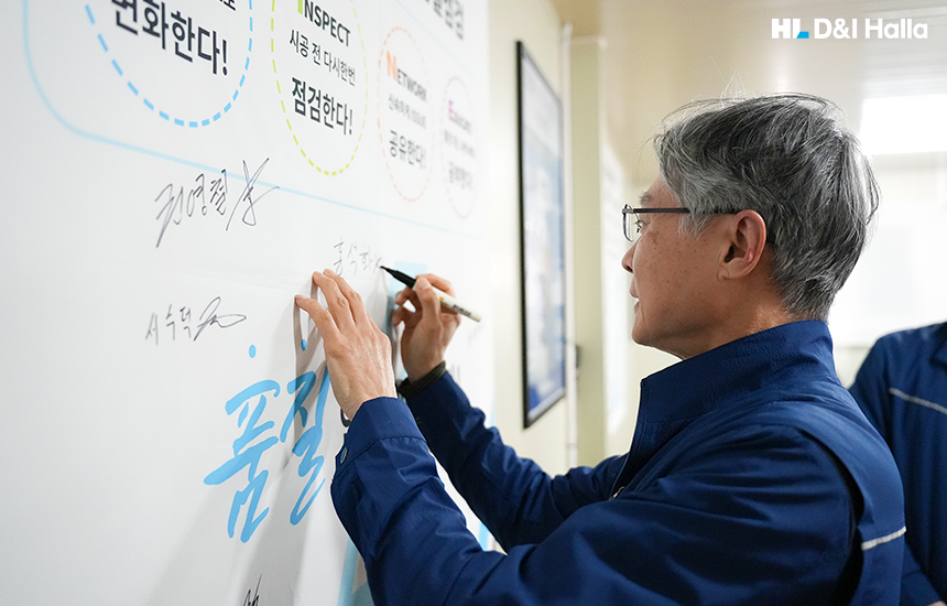 끝으로 참석자들은 품질을 최우선으로 변화하고(Modify), 시공 전 다시 한번 점검하고(Inspect), 신속하게 이슈를 공유하며(Network), 좋은 기준과 나쁜 사례 모두 공부한다(Educate)고 다짐하는 현수막에 각자 서명하며 행사는 마무리되었다.
