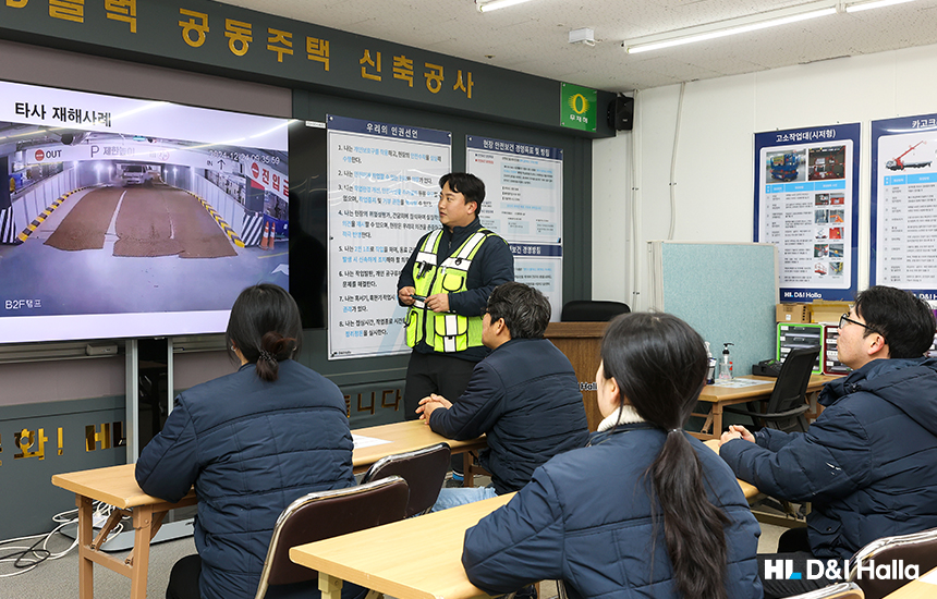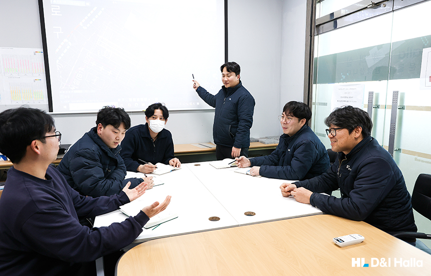 본사 품질 관리 부서에서 공정 진행 순서에 맞춰 현장 관리에 필요한 가이드라인 등 유익한 자료와 업무 지침을 제공해 주잖아요. 팀즈에 관련 팝업이 뜰 때마다 현장 직원들과 공유하면서 잘 활용하고 있습니다. 현장 직원들에게는 항상 앞서 준비하려는 자세를 가지고, 생각 근육을 훈련하자고 독려하고 있습니다.