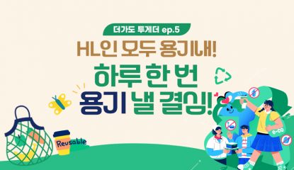 택배, 배달 음식 등으로 우리의 생활은 정말 편리해졌죠! 반면에 잦은 일회용기 사용, 과대 포장으로 인한 환경 문제가 심각해지고 있습니다. 환경을 위한 실천으로 HL인들이 다회용기 사용에 도전했습니다. 총 5일간 이어진 더가도 투게더 이야기를 전합니다.