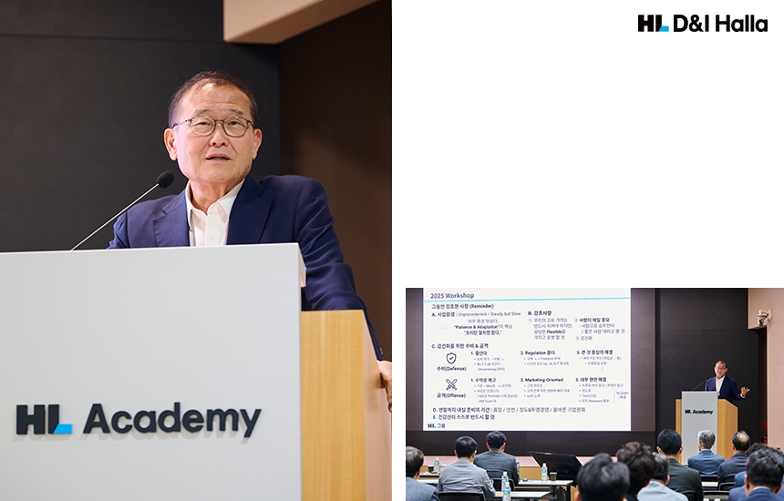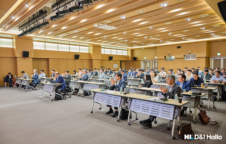 지난 6월 19일 HL그룹 정몽원 회장, 건설 섹터 홍석화 수석사장과 임원, 직원 대표, 현장 소장 등 80여 명이 참석한 가운데 ‘2025 HL D&I Halla 전략 워크숍’이 열렸다. 이날 워크숍은 2025년 상반기를 마무리하고 하반기를 전망하는 데 그 의미가 컸으며, 당사의 중기 목표 수립과 목표 달성을 위한 마일스톤을 공유하는 뜻깊은 시간이었다.