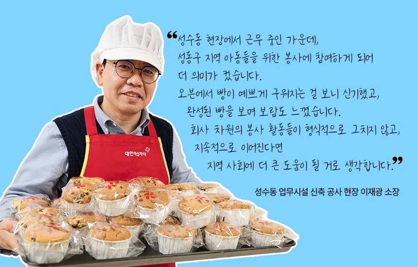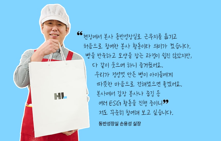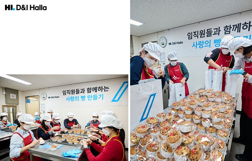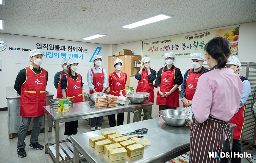 HL 디앤아이한라 임직원이 사랑의 빵 만들기 봉사활동에 참여했습니다. 약 3시간 동안 정성껏 만든 빵은 성동구청 내 복지관 9곳에 전달했습니다. 이번 봉사활동은 지역사회와 따뜻한 정을 나누고 이웃사랑을 실천하는 뜻깊은 시간이었습니다. 맛있는 빵 내음이 가득했던 현장의 모습을 전합니다.