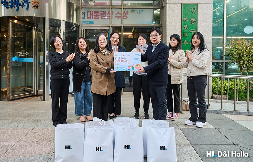 임직원 일부는 성동구청으로 이동해 구청 관계자와 복지관 담당자들이 모인 가운데 전달식을 가졌습니다. 지역사회와 함께하고자 하는 HL 디앤아이한라의 진심이 잘 전해졌기 바라며, 이번 봉사활동에 참여한 임직원 모두 보람을 느끼는 하루가 되었기를 바랍니다.