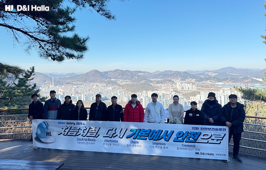 HL 디앤아이한라 안전보건팀이 2026년 새해를 맞아 ‘중대재해 ZERO 결의다짐 산행’을 통해 올해의 안전 목표를 다시 한 번 다졌다.이번 산행은2026년 안전보건 슬로건인 ‘처음처럼, 다시 기본에서 안전으로’를 전 임직원이 함께 새기고, 현장에서 반드시 지켜야 할 안전의 기본과 원칙을 다시 정립하기 위해 마련됐다.