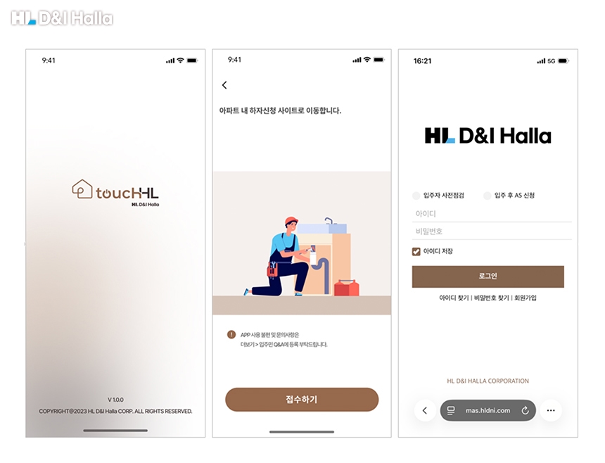 고객지원시스템은 입주민 통합 생활 플랫폼 ‘TouchHL’과 연동되어 운영되고 있다. TouchHL은 모바일 원격 제어가 가능한 스마트홈 기반 서비스로, 하나의 채널에서 입주민이 생활 편의 서비스와 하자 접수를 동시에 이용할 수 있다. 이를 통해 고객지원의 기능을 단순한 사후관리 영역을 넘어, 일상 속 주거 경험 전반으로 확장했다.