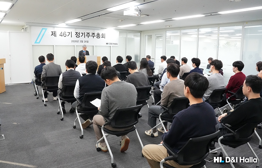 HL 디앤아이한라가 지난 3월 26일, 제46기 정기주주총회를 열고 불확실한 경영 환경 속에서도 흔들림 없이 나아갈 미래 전략을 공유했다. 이번 주총은 단순히 안건을 의결하는 자리를 넘어, 회사의 목표에 대해 임직원 모두가 깊이 공감하고 소통하는 소중한 시간이었다.