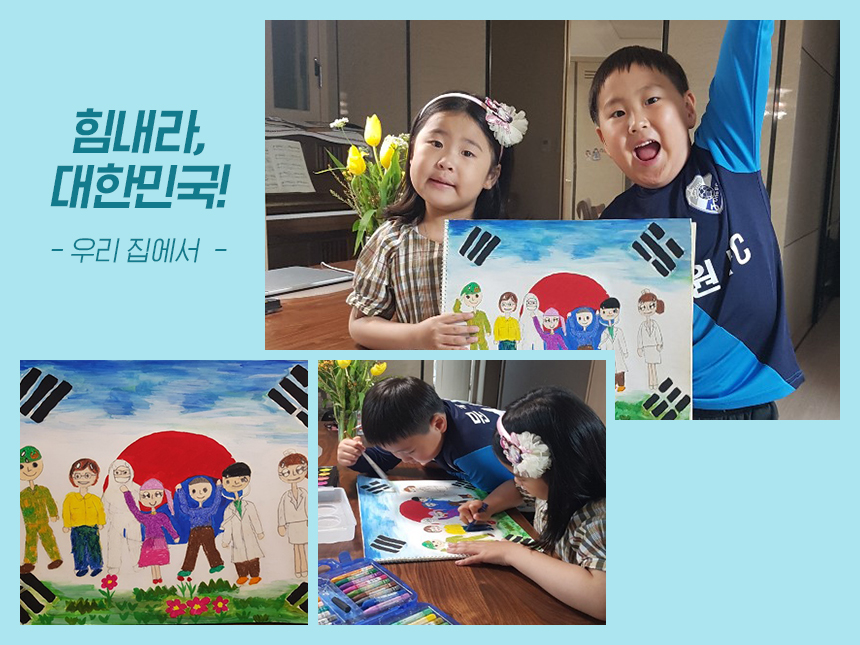 “우리 아이들은 태극기만 보면 ‘대한민국’이라고 이야기를 합니다. 호국보훈의 달을 맞아 아이들에게 대한민국 국기인 태극기의 이름과 의미를 설명해주고 직접 그려보는 시간을 가져보았습니다. 코로나19로 주말이면 집에 갇혀 있지만 #덕분에 챌린지에 동참해 의미 있는 경험을 했습니다.”