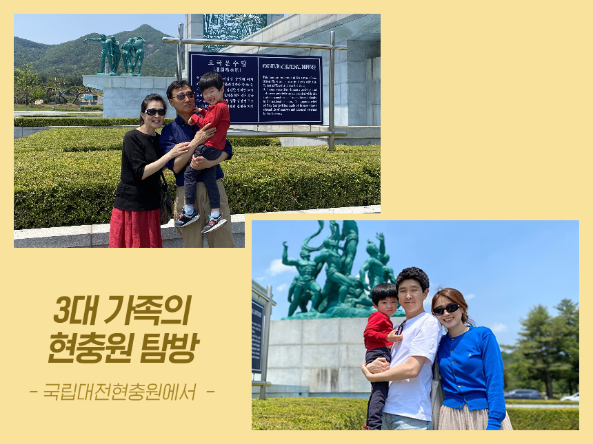 “호국보훈의 달을 맞이하여 아이와 함께 국립대전현충원을 방문하였습니다. 대한민국 자주국방을 위해 대전의 국방과학연구소에서 근무하고 계신 자랑스러운 부모님도 모시고 가니 기분이 더욱 뿌듯했습니다. 3대 가족이 현충탑과 연평해전 전사자 묘역에 들러 참배하고 헌화하며 뜻깊은 시간을 보냈습니다.”