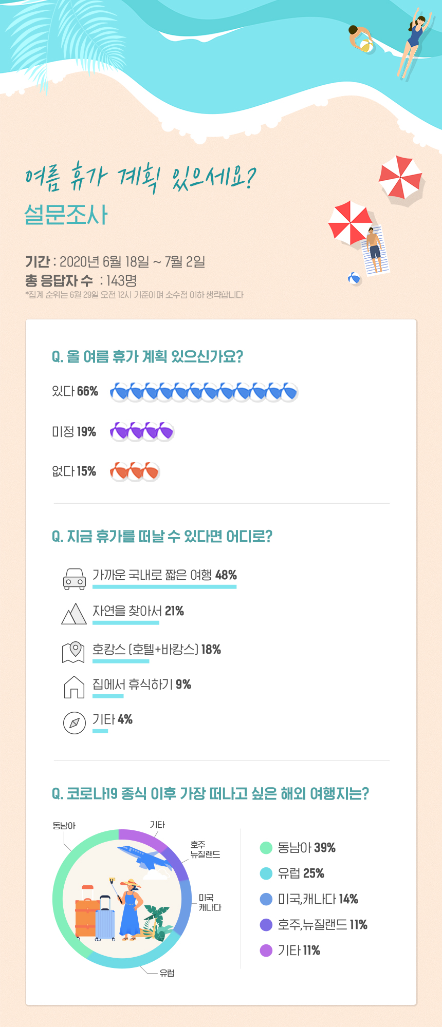 폭염 속 마스크 착용까지 견뎌야 하는 여름, 생각만 해도 두렵다. 코로나19 종식을 위한 거리 두기로 활동이 자유롭지 못하지만, 여름 휴가는 놓치고 싶지 않다. 여름 휴가 계획을 준비하는 한라인에게 가고 싶은 해외 여행지를 물었다.