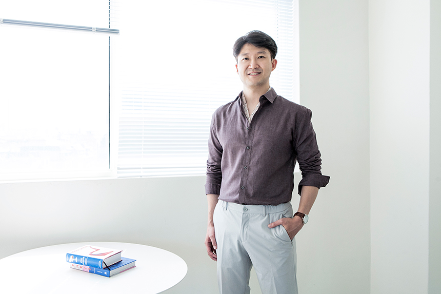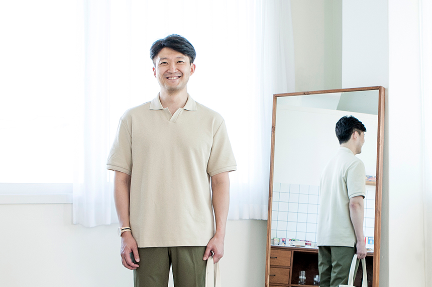 A. 면 소재의 티셔츠와 팬츠 위주로 편하게 입습니다. 특정한 스타일을 선호하는 편은 아니었는데 요즘은 오버핏을 즐겨 입어요. 컬러는 파스텔 계열의 밝은 톤이 점점 좋아지고 있죠. 옷은 직접 고르고 아내와 의논해 구매합니다.