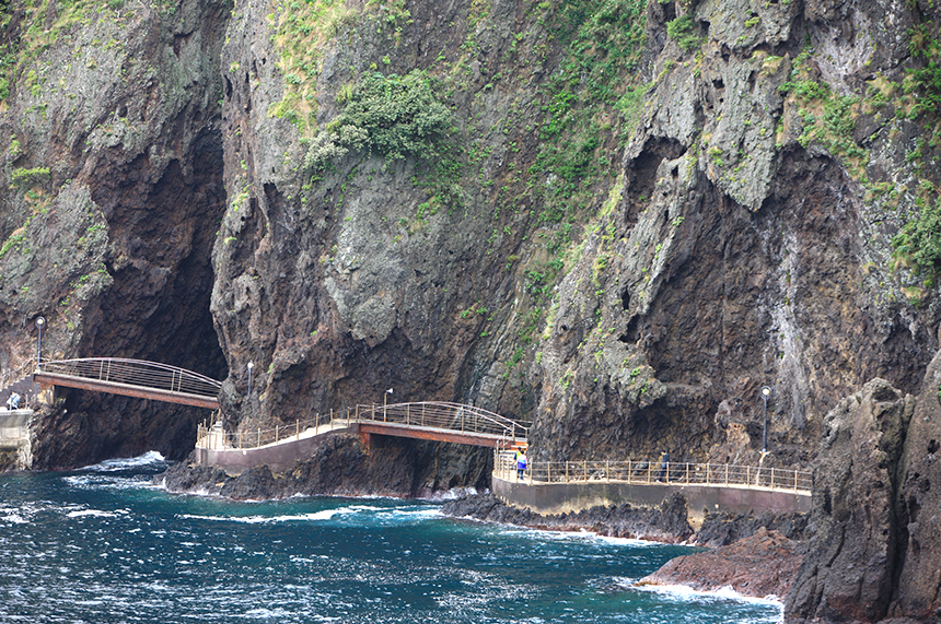 울릉도 밖에서 바라보는 울릉도 모습은 어떨까? 유람선을 타고 도동항을 출발해 서면의 사동항, 태하항과 북면의 천부항, 관음도를 거쳐 죽도, 저동항 등을 일주한 후 돌아오는 해상일주관광으로 확인할 수 있다. 자연이 빚은 주상절리가 이어지고, 바람이 센 대풍감 해안, 관음쌍굴로 유명한 관음도 그 밖에 코끼리 바위, 죽암 등 볼거리가 가득하다. 선실에서 나갈 수 있어 생생하게 감상할 수 있으며 일행 중 노약자가 있다면 시도해볼 만한 2시간짜리 코스다.