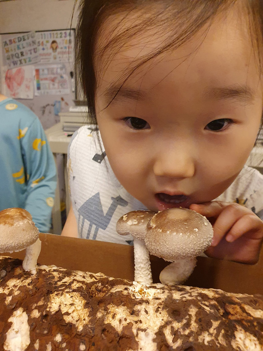 코로나19 때문에 바깥 활동이 제한적인 요즘, 집에서 시도해 볼 수 있는 아주 즐거운 체험이었습니다. 예상보다 표고버섯의 성장 속도가 매우 빨라서 하루하루 신기한 경험을 했습니다. 직접 재배해 수확하니까 더욱 의미 있고, 추억에 남는 저녁 만찬을 즐길 수 있게 되어 매우 행복했습니다. 감사합니다