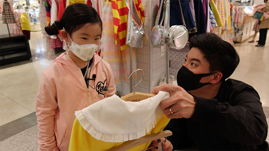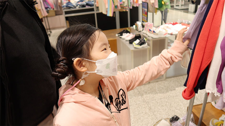 아빠와 딸, 단둘만의 첫 쇼핑은 일사천리로 진행됐다. 코로나19로 대부분 온라인 수업이 진행되는 가운데 초등학교 1~2학년은 매일 등교를 하고 있어 학교에 입고 다닐 옷 위주로 고르기로 했다. 현대시티아울렛 3층 아동의류 코너는 의류와 신발, 가방, 액세서리 등 아이들에게 필요한 다양한 아이템을 갖춰 원스톱 쇼핑을 하기 좋았다. 매장을 둘러보는 것도 잠시, 채원이는 평소 좋아해 온 브랜드 매장으로 아빠의 손을 이끌었다. 자기 주관과 취향이 뚜렷한 아이라 신동욱 프로도 딸의 결정을 금세 따라주었다.