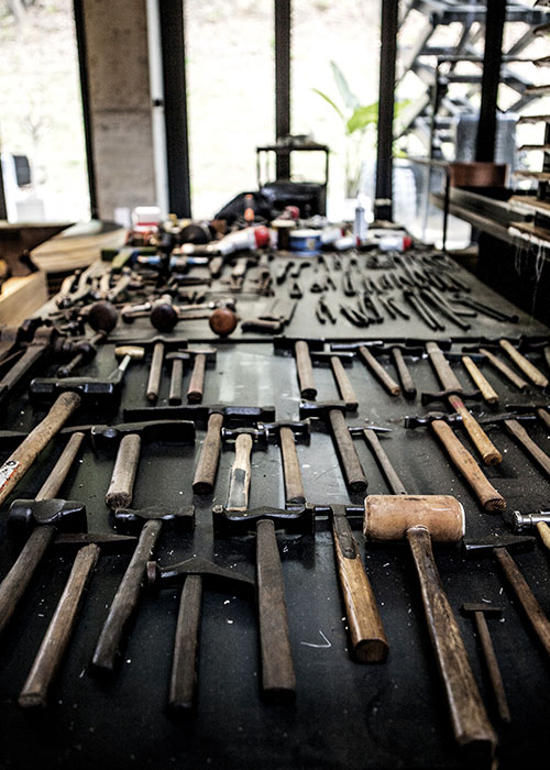 금속판을 두들겨 만든 트레이, 굽 높은 접시, 선명한 컬러를 입은 주전자 등 작가의 손에서 탄생한 옻칠 공예품은 등장과 함께 인기를 얻었다. 갤러리들은 경쟁하듯 그의 작품을 소개했고, 그의 작업실을 궁금해하는 사람도 점점 많아졌다.
