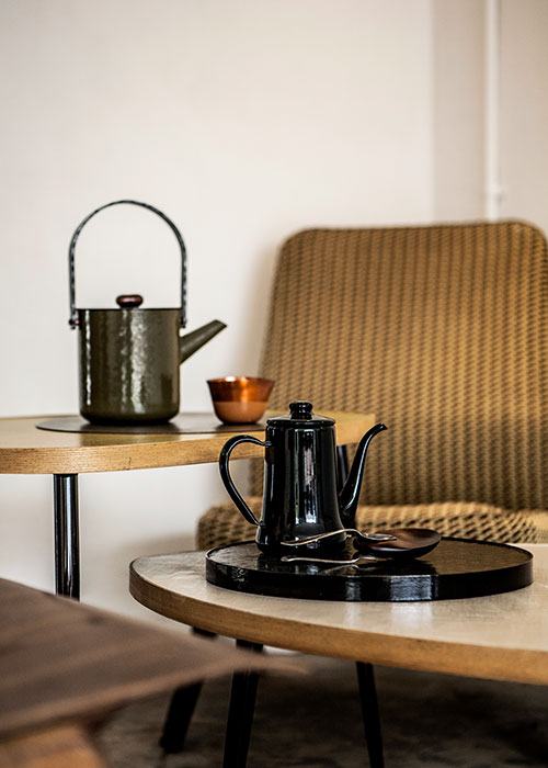 테이블부터 티팟, 의자, 조명 등 작가의 소품 라인들.
