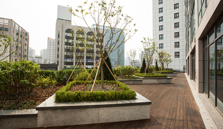 공기가 2개월 정도 부족한 리스크를 안고 출발한 현장이라는 점도 상당한 부담으로 다가왔다. 역타공법과 상가가 들어서는 지상 1~2층과 3층을 철근콘크리트조에서 합성보 및 TG보로 변경해 무사히 공기를 맞출 수 있었다.