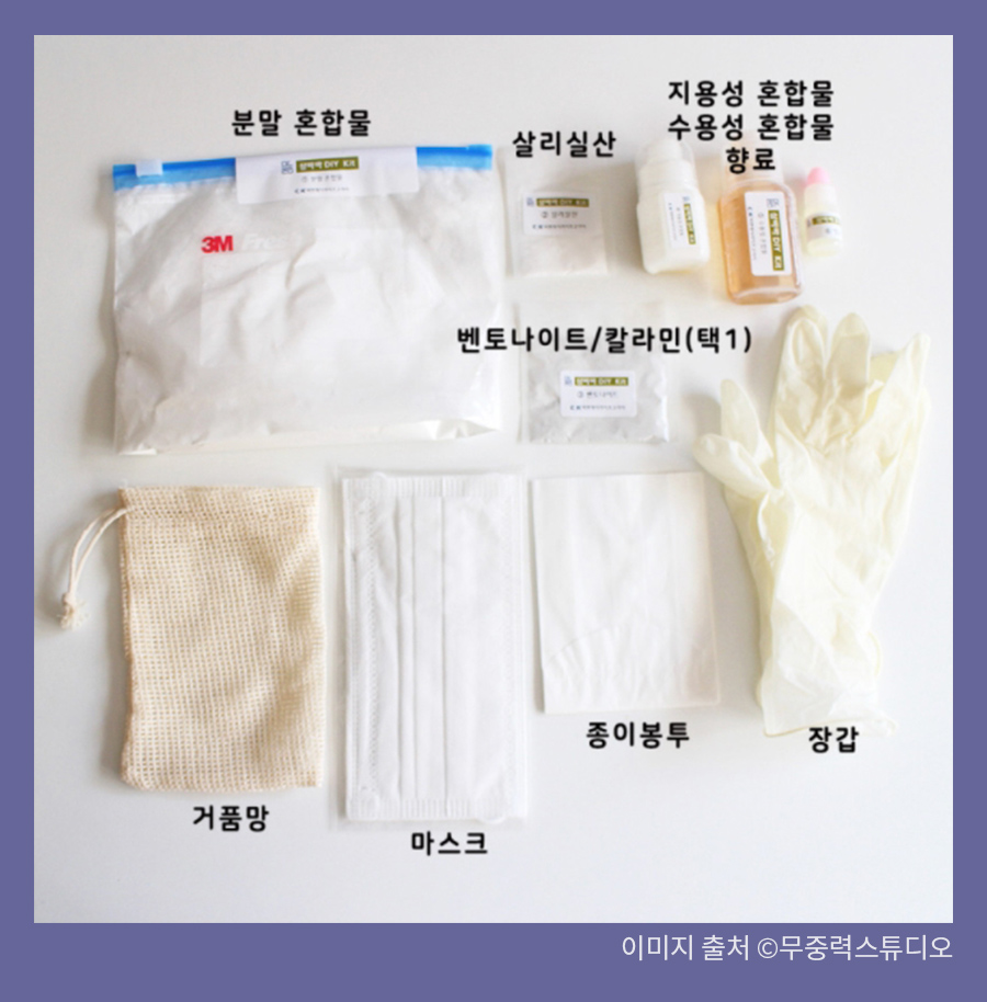 비누 만들기는 처음이라 기대 반 걱정 반으로 주말에 여자친구와 제작 키트를 개봉하였습니다. 우려와는 달리 제작 키트의 설명서가 아이들도 쉽게 따라 할 수 있도록 상세히 설명되어 있었어요. 제작 과정 중에 발생하는 분진에 대비한 마스크도 함께 동봉된 점에서 센스 또한 엿볼 수 있었습니다. 성장기 아이들의 촉감 발달 및 체험 교육으로 활용하기 좋은 키트인 것 같습니다. ^^