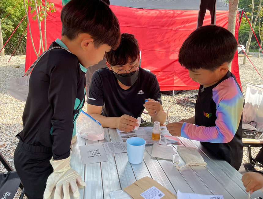 “캠핑장에서 비누 만들기에 성공했어요”