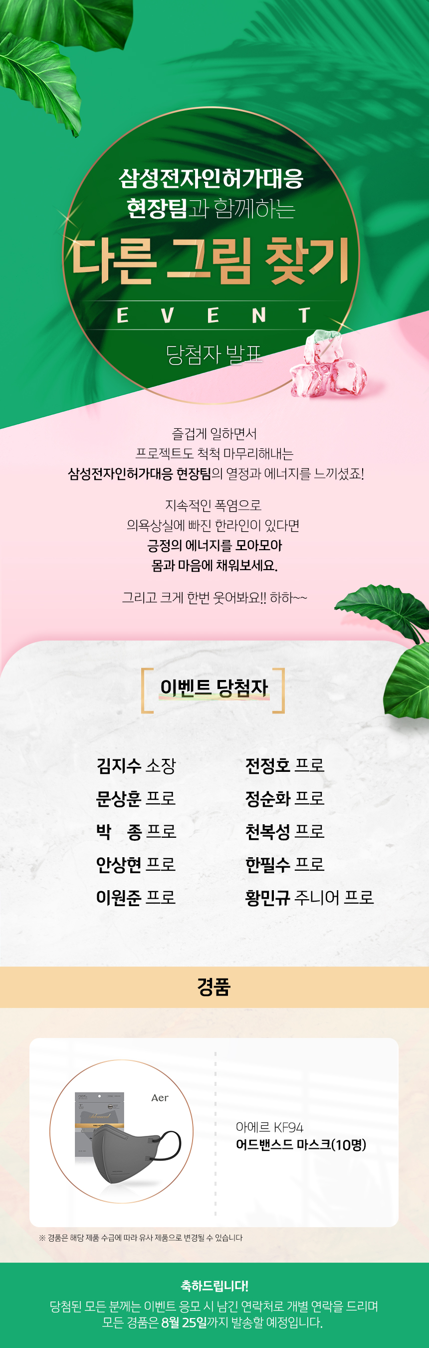 삼성전자인허가대응 현장팀과 함께하는다른 그림 찾기 이벤트 당첨자 발표 공감2 등록된 댓글이 없습니다. 댓글 등록 Cancel reply 이름은 전체공개되며, 닉네임으로 설정 가능합니다. 이메일은 공개되지 않습니다. 이미지 업로드는 10 MB까지 가능합니다.