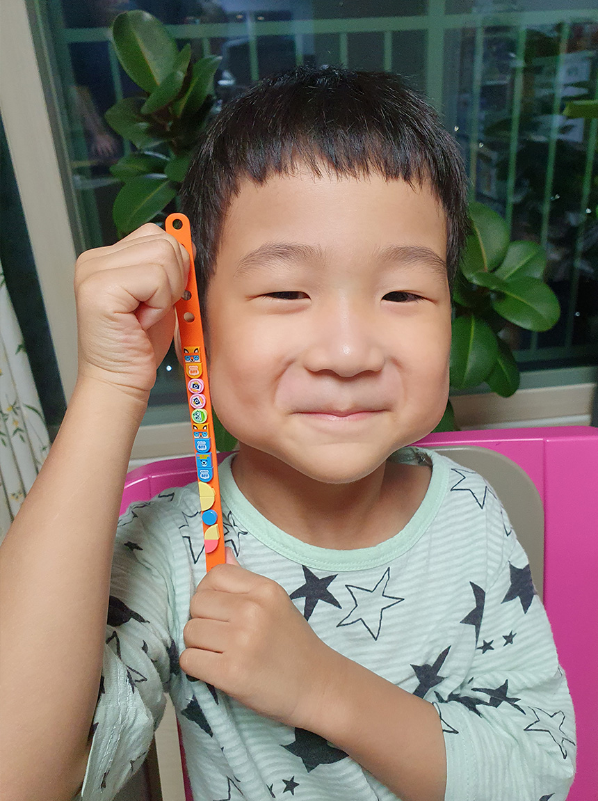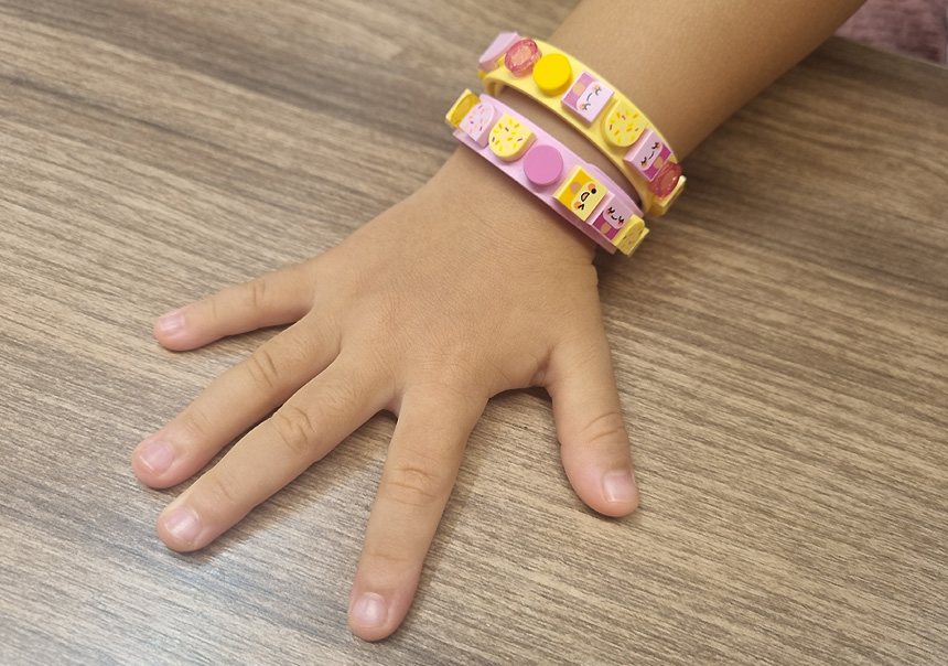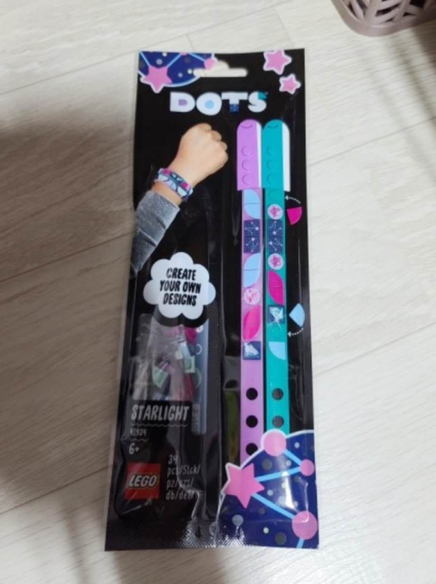 요즘 레고에 푹 빠져 있는 둘째 아들에게 팔찌 만들기 키트를 주었더니 매우 좋아하면서 바로 그 자리에서 만들었습니다. 아이 마음에 쏙 들었는지 다음날 학교에 갈 때 착용했고, 친구들에게 자랑했다고 합니다.