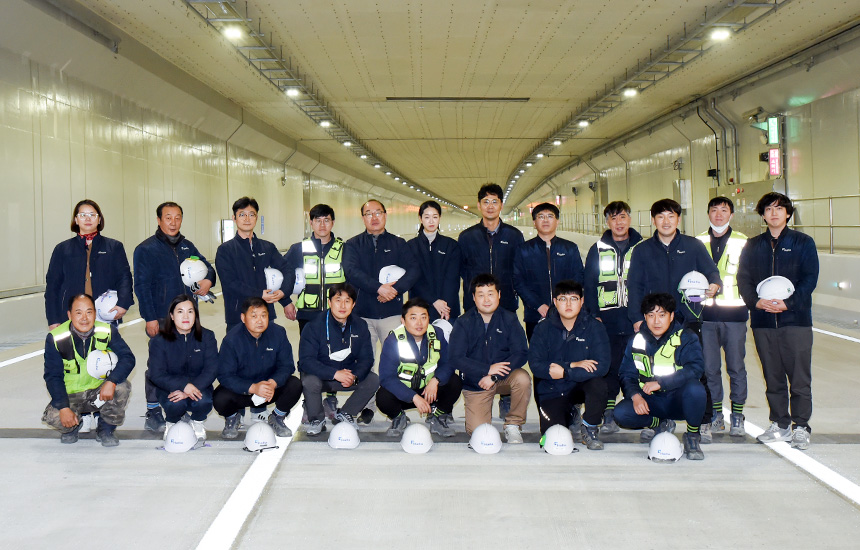 다수의 경험을 가진 한라 현장팀이지만, 처음 해보는 공정이 많아 연구와 시도가 필요했다. 그 결과 지하차도로는 우리나라에서 처음으로 방재 등급 1등급을 받는 놀라운 성과를 만들어냈다. 최고 등급의 재연 설비를 갖춘 지하차도는 화재가 나도 콘크리트가 터지지 않고, 연기는 위로 빠져 피해를 줄여준다.